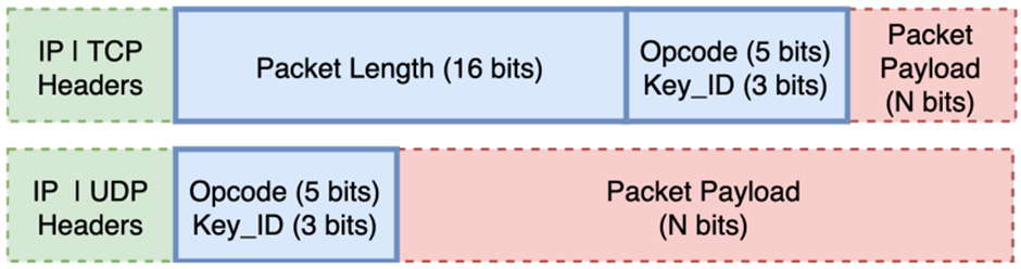 - The data channel exposes certain fields, such as opcode and Key ID, in plaintext.